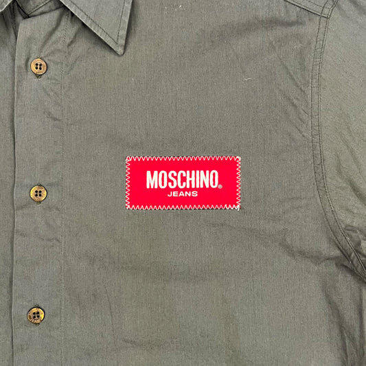 Moschino Jeans Khaki Box Logo Shirt - Size: Medium