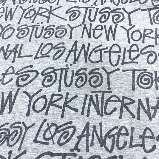 Stüssy All Over Spellout T-shirt - Size: Medium - Grey